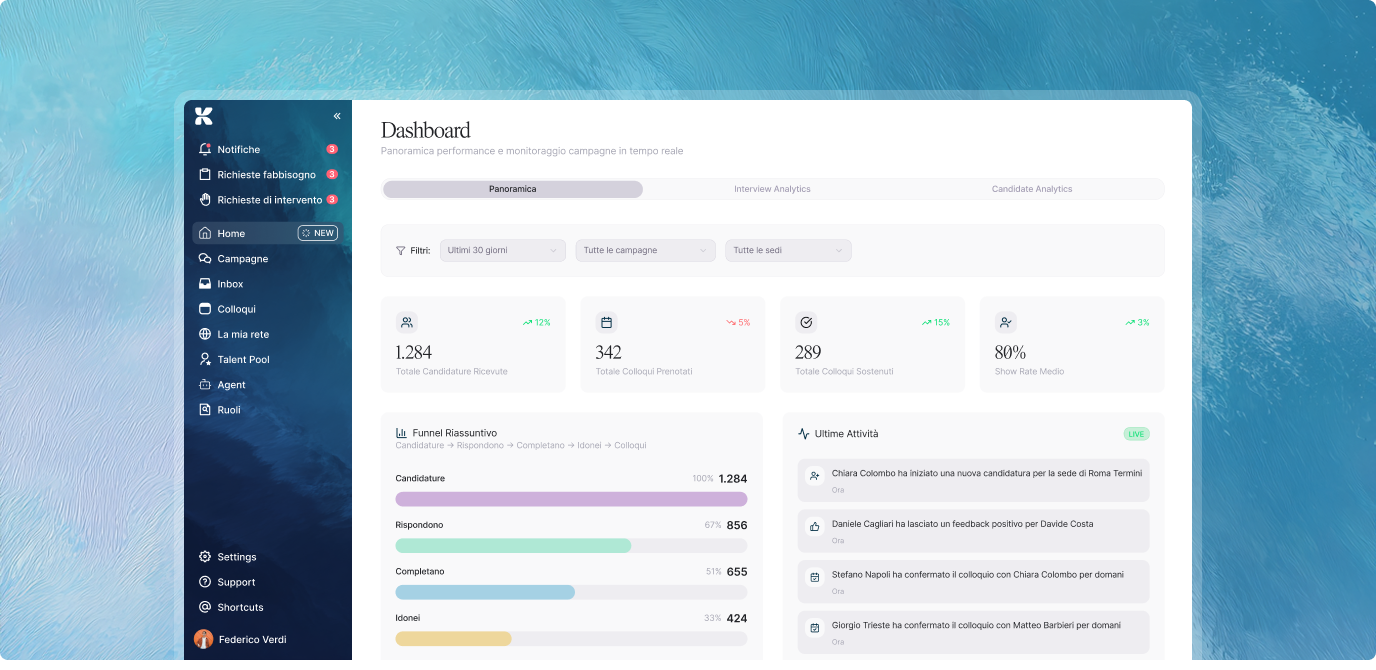 Gli agenti conversazionali di Klaaryo operano secondo flussi configurabili dall’azienda, nel rispetto delle policy HR e dei sistemi esistenti.