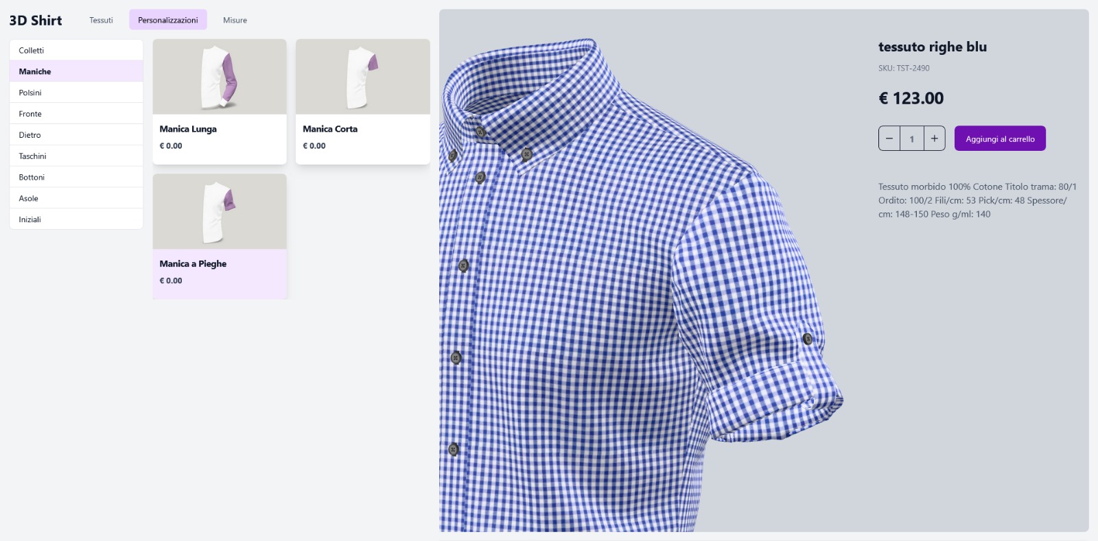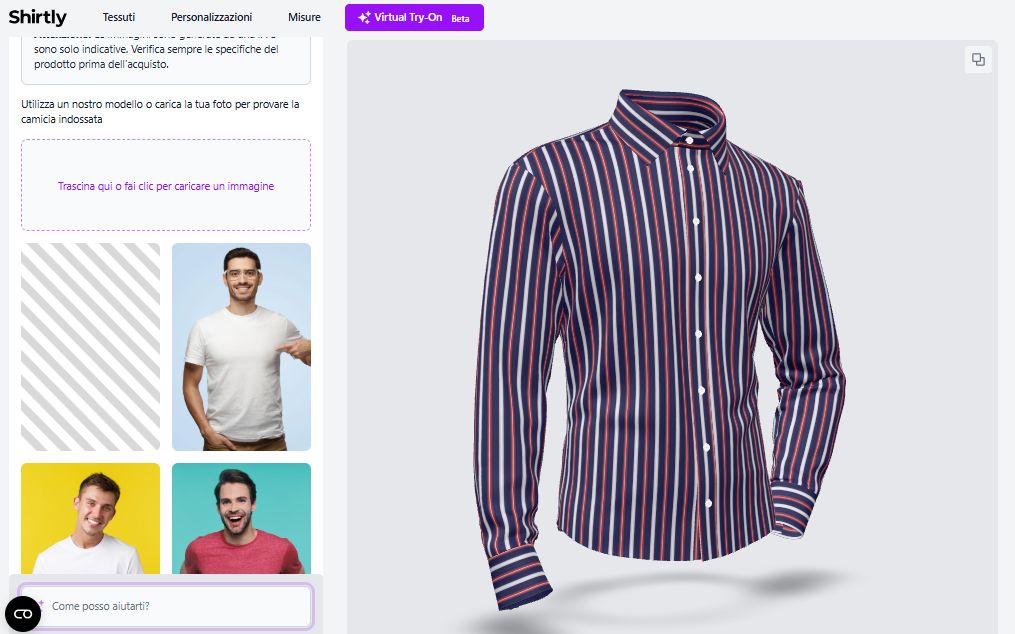 Il nostro modello di camicia può riprodurre ogni tipo di lavorazione impiegato dalle sartorie.Grazie all’intelligenza artificiale inoltre, il cliente può “indossare” virtualmente la camicia personalizzata, caricando una propria foto che verrà rivestita con la camicia scelta.