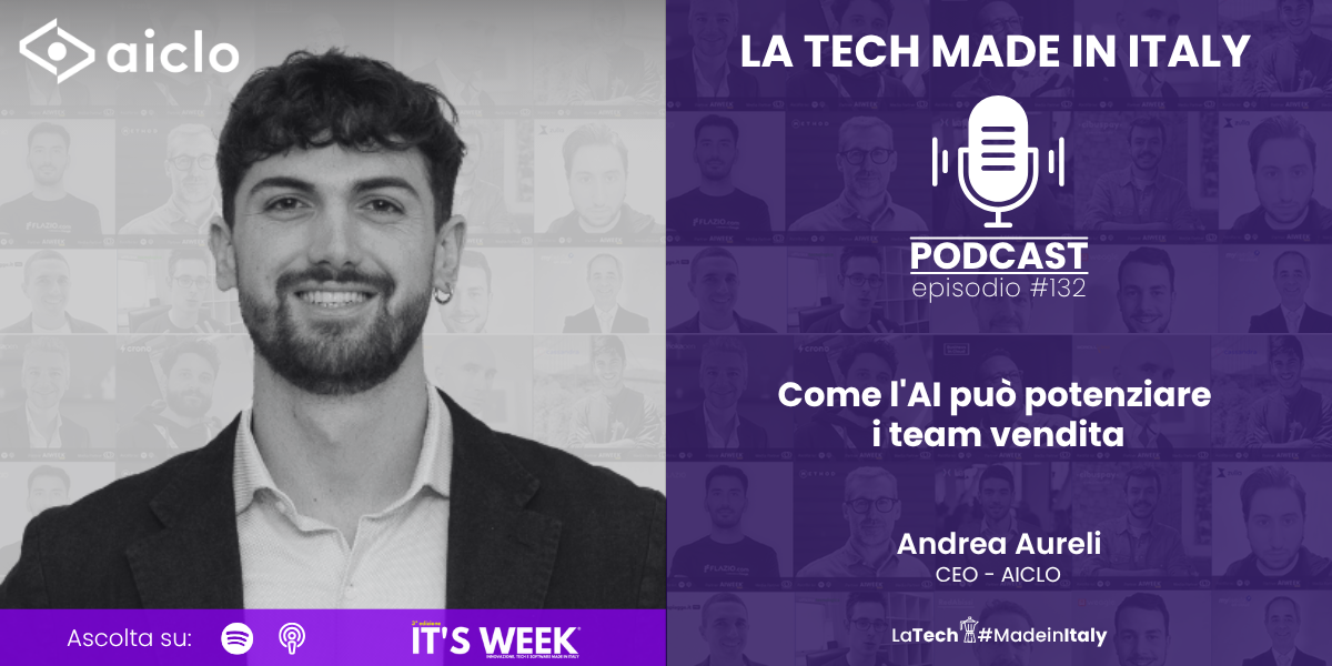 In questa puntata della Tech Made in Italy entriamo nel cuore di un tema che accomuna tutte le aziende, indipendentemente dal settore o dalla dimensione: le vendite. Da sempre identificate come “il sale delle aziende”, perché senza vendite nessun business può crescere. Per questo abbiamo scelto di raccontare la storia di AICLO, una piattaforma italiana di conversational intelligence che analizza automaticamente le conversazioni commerciali e le trasforma in insight utili per manager e team vendita. A guidarci in questo viaggio è Andrea Aureli, CEO e co-founder di AICLO, che ci ha condiviso l’origine del progetto, la visione e l’esperienza concreta da cui tutto è partito.